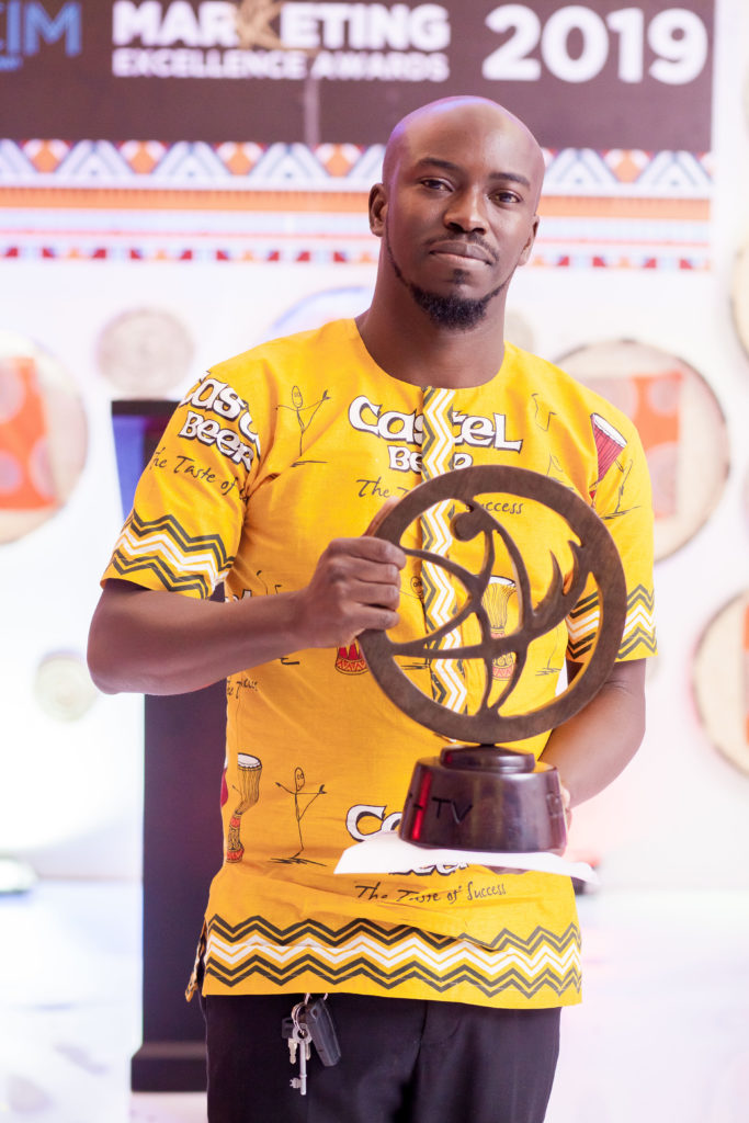 Castel Malawi’s Alcoholic Beverages Brands Manager William Nsona poses with the award for the ‘TV Commercial of the Year’